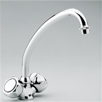 - Chromé - Vidage inclus - Tête à clapet - Bec col de cygne orientable - Poignées métal